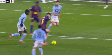 双方像不设防一样,上半时补时阶段,巴萨左路压上,拉什福德强行突破杀入禁区倒三角回传,莫里巴回防解围却将球踢到亚马尔身前,亚马尔笑纳大礼迎球大力推射,皮球直入球门近端死角,巴萨半场结束前3:2再次取得领先。易边再战巴萨稳扎稳打,没有再给塞尔塔机会,第72分钟,巴萨左侧角球机会,拉什福德操刀主罚兜传前点,莱万小禁区角上抢点后脑勺一曾,皮球击中球门远端门柱内侧弹入网窝,莱万上演帽子戏法,巴萨4:2锁定胜局。补时阶段,德容在和阿斯帕斯争抢中,背后踢倒阿斯帕斯,主裁给德容颁发第2张黄卡,德容最后时刻两黄变一红被罚下场。